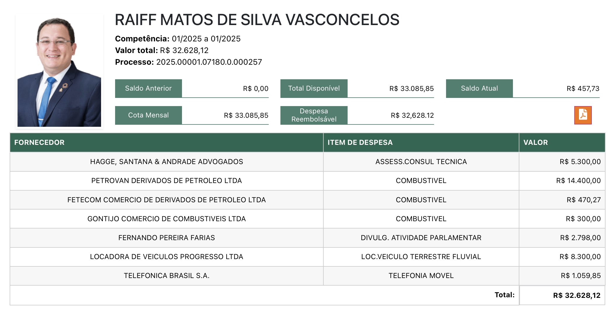 Você pode ver todos os gastos de Raiff Matos clicando AQUI.
