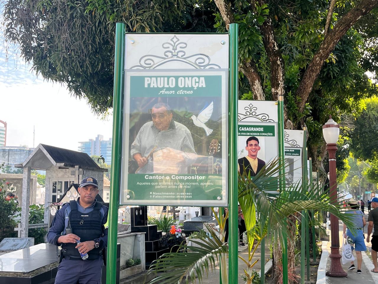 Foi assim neste domingo, Dia de Finados, quando alguns visitantes interromperam sua caminhada para contemplar o banner do sambista Paulo Onça, falecido em 26 de maio deste ano, aos 63 anos, após ter sido agredido durante uma briga de trânsito ocorrida em dezembro do ano passado, em Manaus.