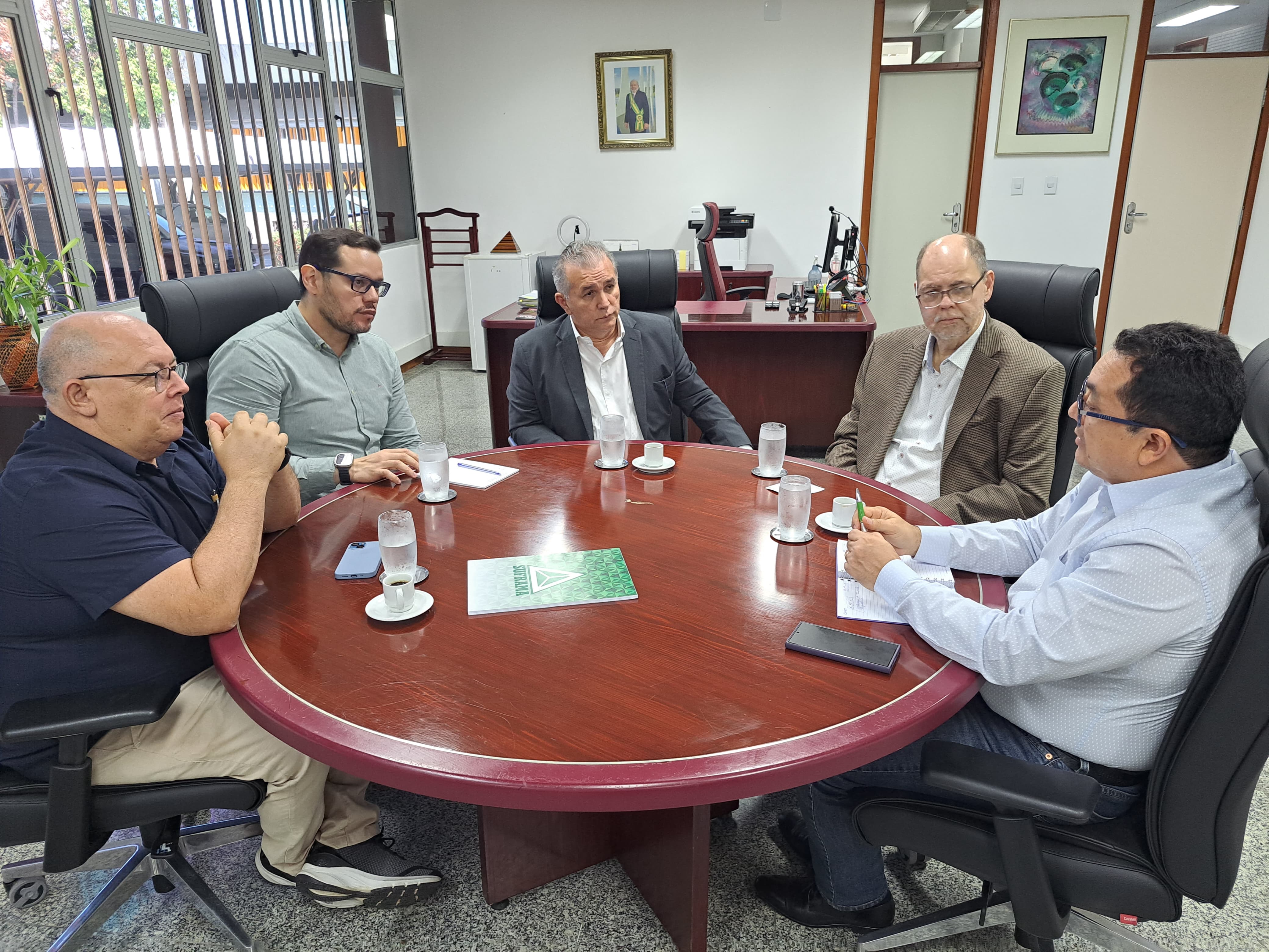 O superintendente-adjunto de Projetos da Suframa, Leopoldo Montenegro, e o superintendente-adjunto de Desenvolvimento e Inovação Tecnológica, Waldenir Vieira, reuniram-se na manhã desta quinta-feira (4), na sede da Autarquia, com o secretário estadual de Inovação, Modernização e Transformação Digital do Paraná, Alex Canziani Silveira, e com o diretor Administrativo e Financeiro do Centro de Bionegócios da Amazônia (CBA), Carlos Henrique Costa. O objetivo da reunião foi dar continuidade às discussões visando ao estabelecimento de um Acordo de Cooperação Técnica entre os órgãos com a finalidade de fomentar projetos de Pesquisa, Desenvolvimento e Inovação (PD&I) com foco no aproveitamento sustentável da biodiversidade amazônica.