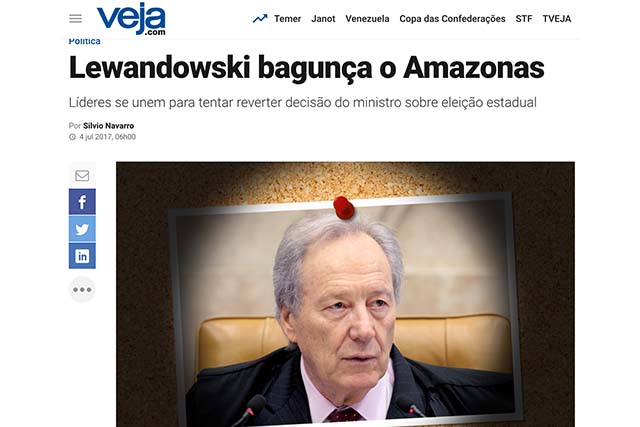 O site da Revista Veja publicou notícia na manhã desta terça-feira, 04/07, afirmando que o o Supremo Tribunal Federal está bagunçando o Amazonas. Confira a nota: