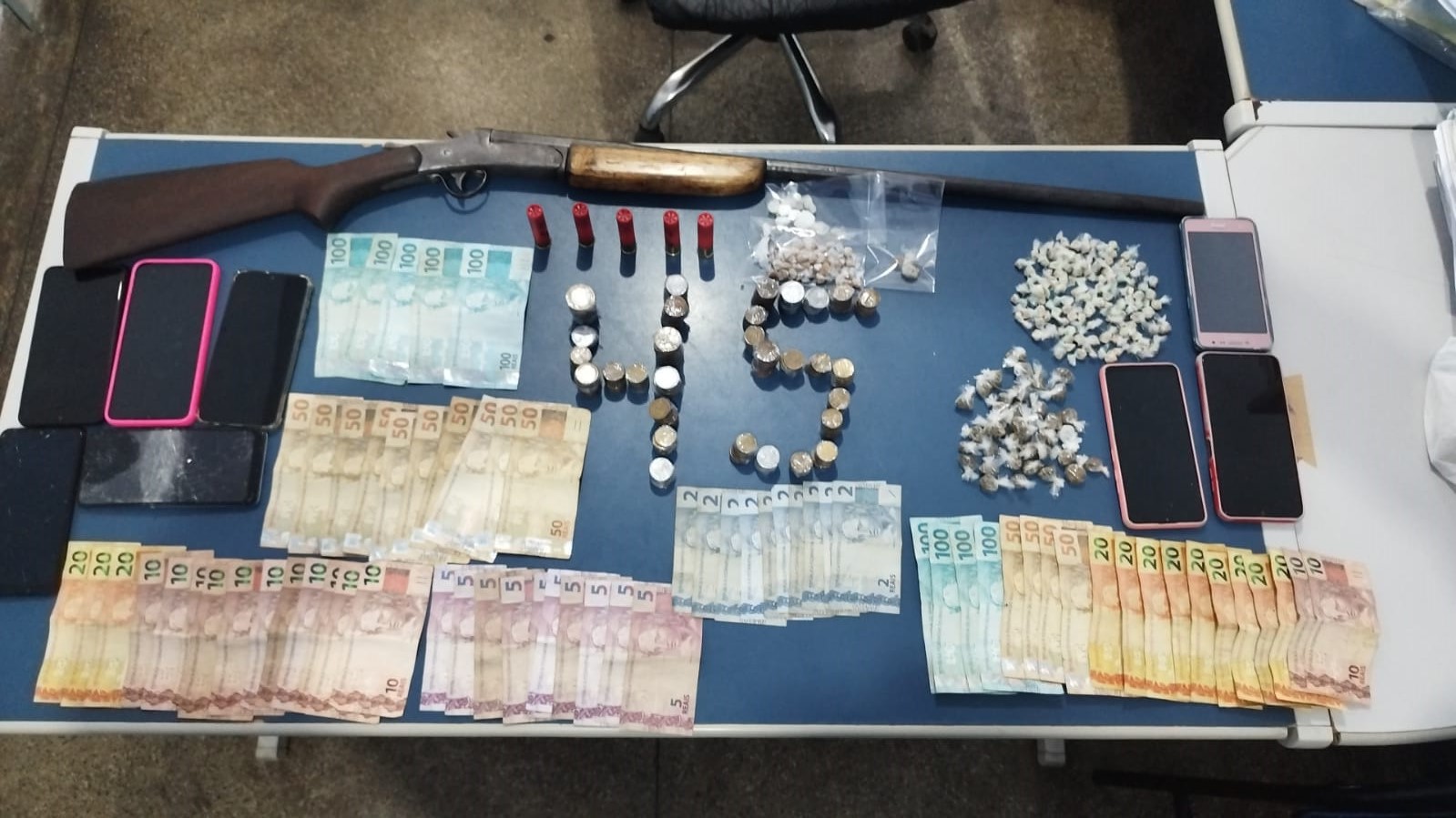 Segundo o delegado, na casa de Delson Seixas Pontes, 45, um dos investigados, foram apreendidos uma motocicleta utilizada para a venda de drogas, mais de mil reais em espécie e algumas trouxinhas de drogas.