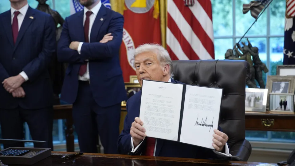 O presidente republicano lidera uma ofensiva tarifária que pretende reduzir o déficit comercial dos Estados Unidos.