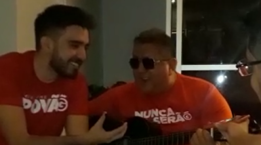 As imagens foram feitas ainda no sábado, 24/10, no mesmo dia que David assinou contrato com o Garantido. Ele aparece ao lado de João Paulo Faria, o Pai Francisco do boi Garantido.