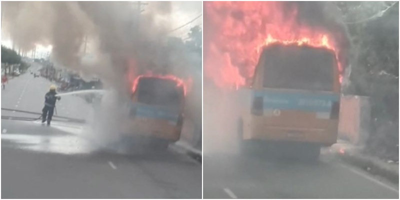 Vídeos feitos por testemunhas mostram o momento em que o fogo se alastra rapidamente pelo micro-ônibus, acompanhado por uma densa coluna de fumaça preta que se elevou por vários metros e pôde ser vista de longe.