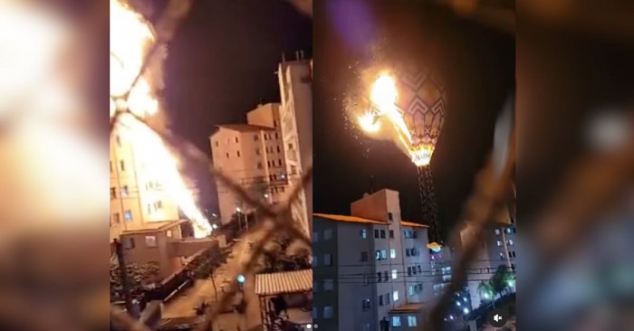 Imagens são impressionantes e mostram o balão de ar sendo consumido pelo fogo; ninguém ficou ferido.
