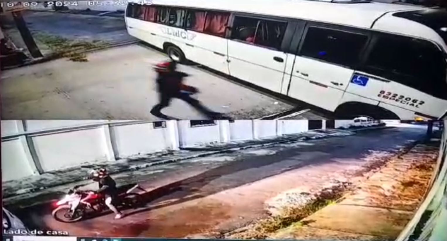 Um ônibus de rota, que transportava trabalhadores, foi alvo de um assalto no Conjunto Renato Souza Pinto, no bairro Cidade Nova, zona norte de Manaus, nesta terça-feira (10/09). A ação criminosa foi registrada por câmeras de vigilância de uma residência.