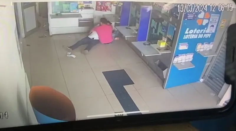 O empresário foi atingido com um disparo de arma de fogo no peito. Câmeras de Segurança registraram a ação e mostram quando um homem entrou na loteria. Minutos depois o suspeito saiu correndo e o dono da lotérica surge atrás dele.