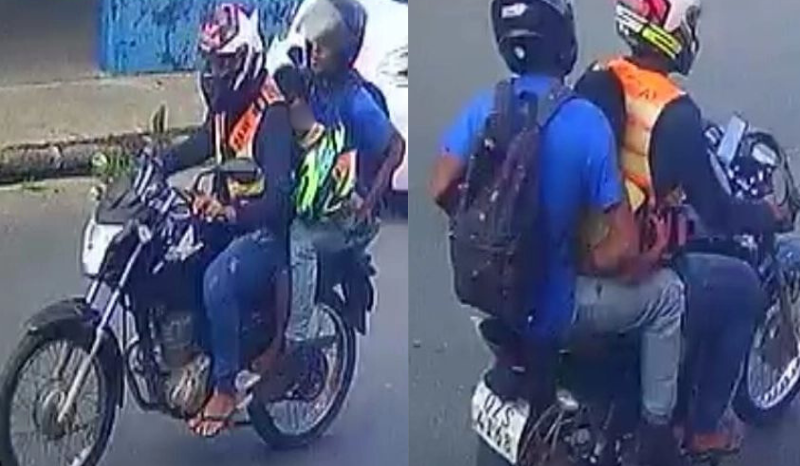 A imagem de câmeras de segurança conseguiram capturar o momento em que os dois homens estão em uma motocicleta e, entre eles, está uma criança que aparenta ser um menino.