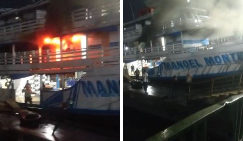Em imagens compartilhadas nos aplicativos de mensagens é possível ver o fogo atingindo o segundo andar do barco chamado de ‘Manoel Monteiro’. A embarcação faz o trajeto de Manaus para o município de Tabatinga (a 1.108 quilômetros a oeste de Manaus).