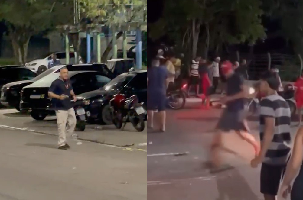 Conforme os vídeos compartilhados nos aplicativos de mensagens, a vítima aparece empunhando o que parece ser uma arma de fogo enquanto tenta se defender das pedras atiradas pelo grupo. A situação toma um rumo ainda mais grave quando um indivíduo se aproxima da vítima, o derruba no chão e, a partir desse instante, ele é atacado por diversas pessoas com chutes, socos e pauladas.