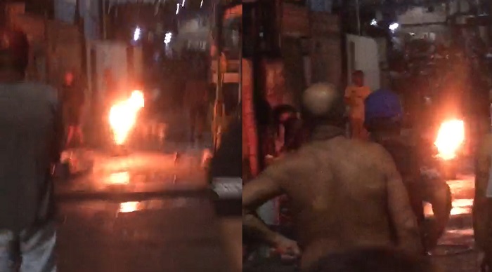 Não há informações sobre outros feridos na ocorrência. Testemunhas registraram em vídeo a botija de gás em chamas.