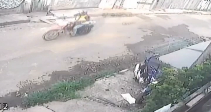 O cachorro ainda tenta resistir e acaba deitando de dor. Mesmo diante dos gritos e pedidos de ajuda dos moradores, o mototaxista não parou a ação criminosa.