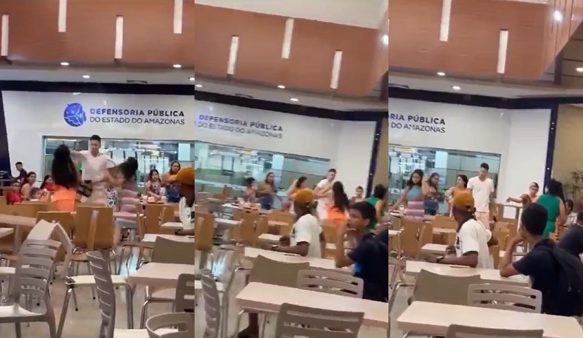 Uma briga foi registrada na praça de alimentação do shopping, na zona Leste de Manaus, nesta sexta-feira (03), envolvendo um casal e uma suposta amante. A ação chamou a atenção de frequentadores do estabelecimento que filmaram o ocorrido. A notícia é do i13News.