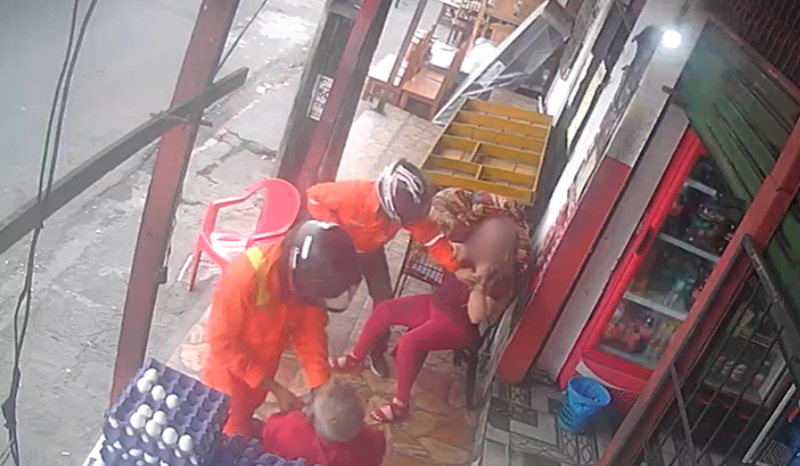 Os assaltantes estavam em uma motocicleta e armados. Eles chegaram no estabelecimento já anunciando o assalto e apontado as armas para as vítimas. É possível perceber que a mulher fica desesperada e começa a gritar: “Pelo amor de Deus, me ajudem, me ajudem”.
