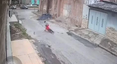 Em vídeos gravados por câmeras de segurança, é possível ver o momento em que o homem cai diretamente no solo. Após a queda, ele fica desacordado.