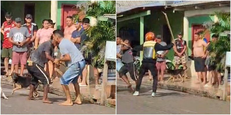 Nas imagens, o suspeito é puxado pela camisa por um homem que está com um pedaço de madeira nas mãos. Em seguida, o suposto criminoso tenta revidar os ataques e iniciar uma luta corporal, mas logo é atacado por outros homens.