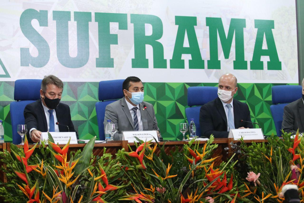 Durante a 295ª reunião do Conselho de Administração da Suframa (CAS), realizada nesta quinta-feira (03/12), na sede da Superintendência da Zona Franca de Manaus (Suframa), zona sul da capital, o governador Wilson Lima destacou como um avanço na política de desenvolvimento regional a aprovação do projeto do Distrito Bioagroindustrial da Amazônia, uma iniciativa do Governo do Estado em parceria com o Governo Federal e a Prefeitura de Rio Preto da Eva.